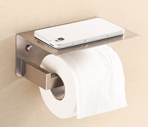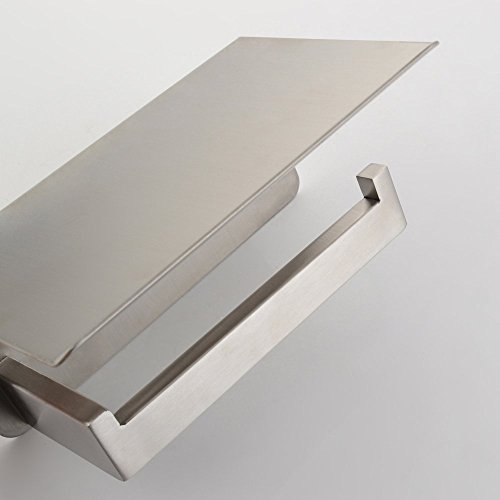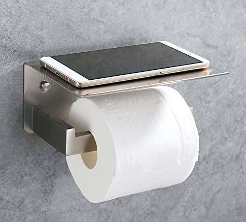 Toilet Paper Holder, APL SUS304 Stainless Steel Bathroom Paper Tissue Holder with Mobile Phone Storage Shelf Rack Brushed Nickel