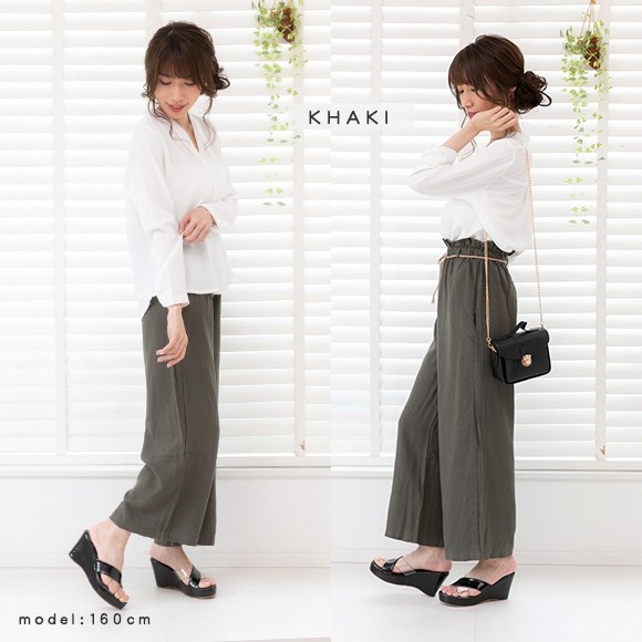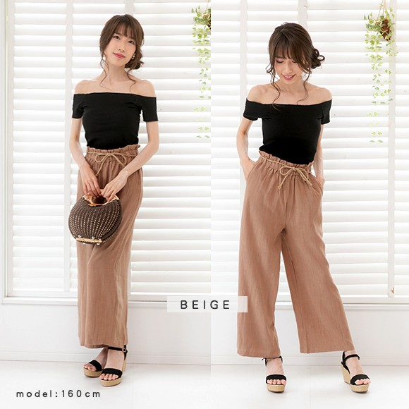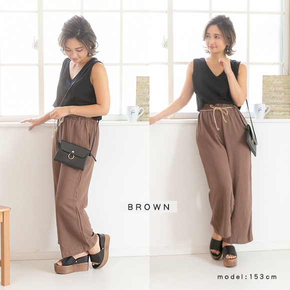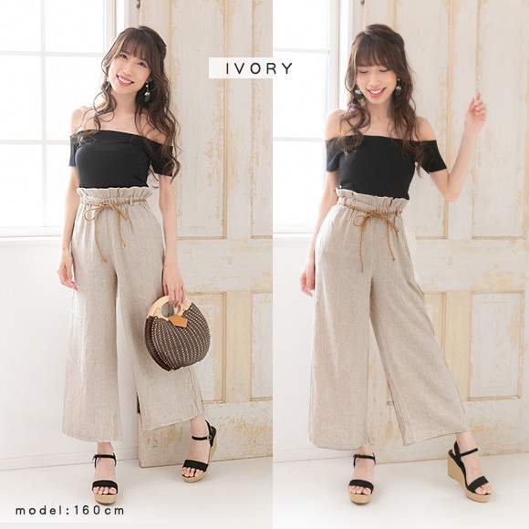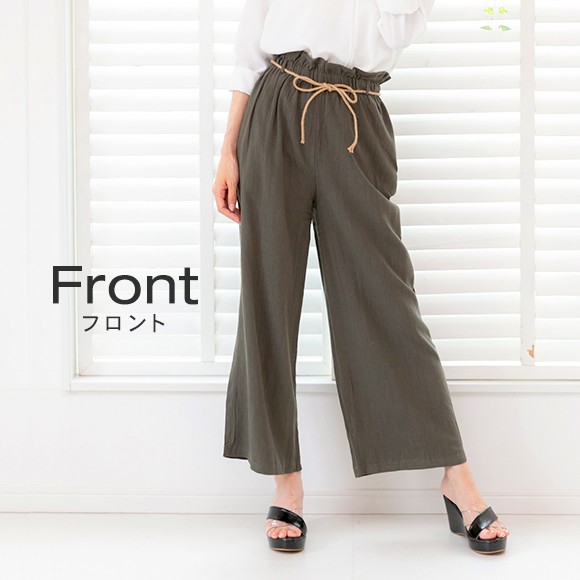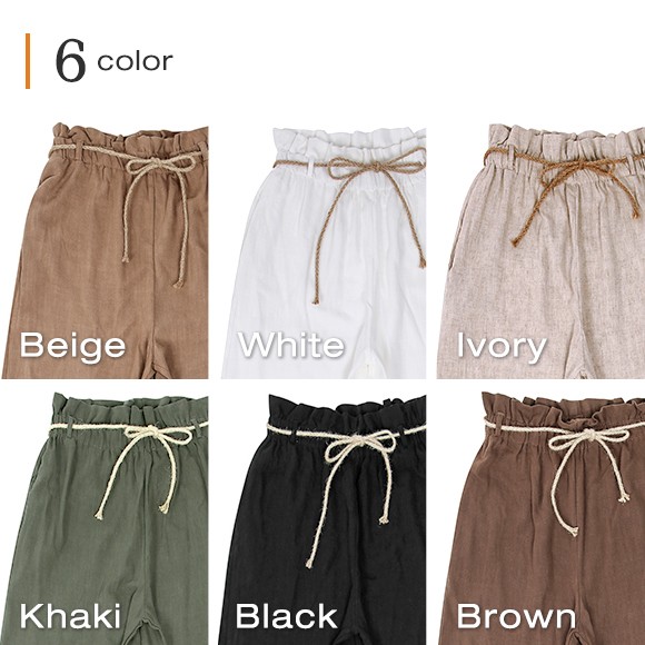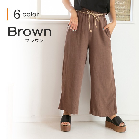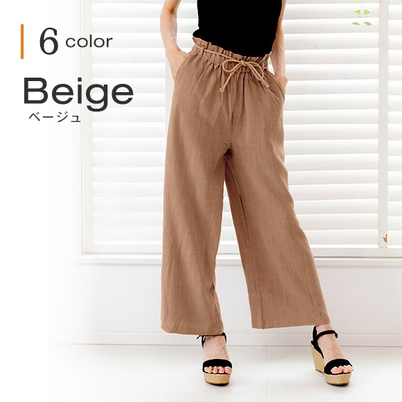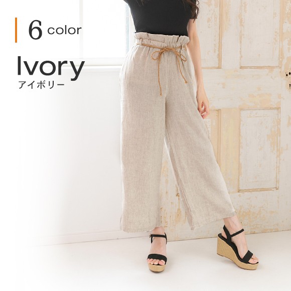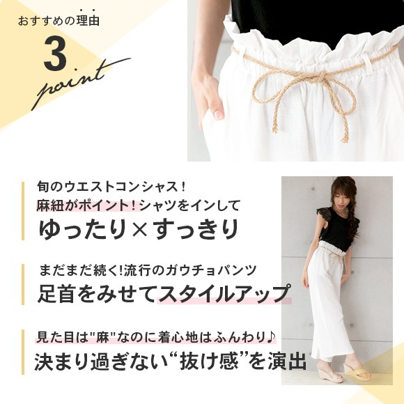 麻の紐がセットになったナチュラルな素材感のガウチョパンツ☆