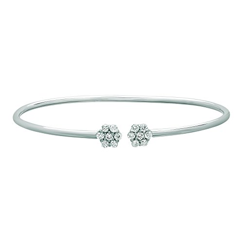 -. Title : 14K White Gold Diamond Flowers Cuff Bangle Bracelet - 0.52ctw. Diamond