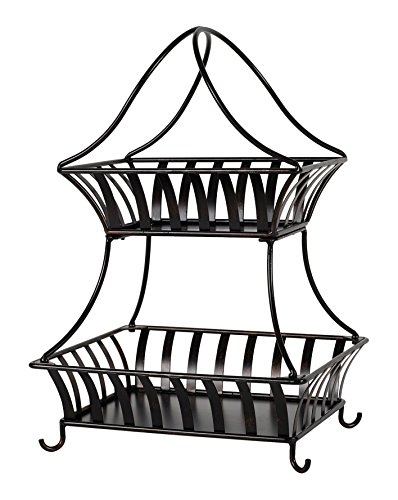 Gourmet Basics by Mikasa Stripe 2-Tier Metal Basket, Antique Black