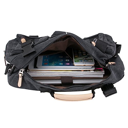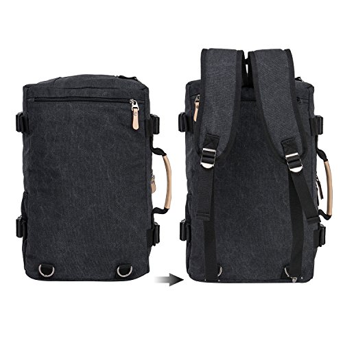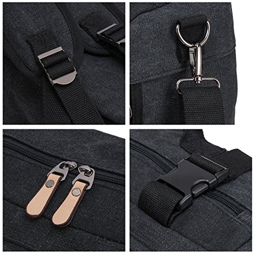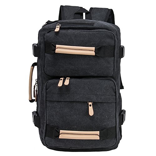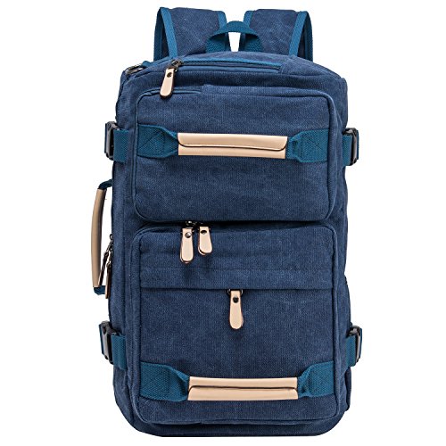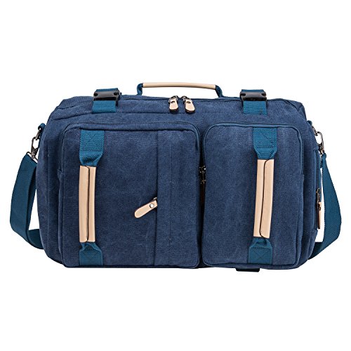-. Feature : DURABLE: Premium quality durable canvas + Cotton lining,buckles on both sides to reinforce the bag. classic fashionable and durable / SIZE: 12.6'' x 7.8'' x 17.7'' (L*W*H),Adjustable straps.designed with a laptop sleeve,could fits a laptop up to 17''. / STRUCTURE: A large main compartment with a padded laptop sleeve for a laptop up to 17'', and 2 inner small pouches ; 2 Front zipper pockets,1 zipper pocket on the top ,1 side pocket for bottle etc. / MULTI-PURPOSE USES: This bag can be used as a duffel/handbag/shoulder bag/backpack when go on traveling.Two durable padded strps are hidden in the back compartment.you can change the way you like to carry.Very comfortable and convenient. / Classically-inspired & styled backpack: Have four colors for choice, ideal for outdoor, working,traveling, hiking,camping, school and everyday using.