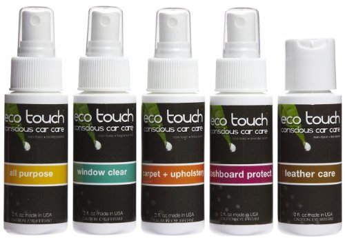 Eco Touch's Car Care Kit Mini Pack gives you car cleaning on the go. This handy kit easily fits in your glove box and includes 2 ounces of the following products: All Purpose, Dashboard Protect, Carpet and Upholstery, Leather Care and Window Clear.