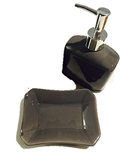 Desiner Colors Ceramic Bath Accessories Set Lotion Soap Dispenser, & Soap Dish (2pcs, gray)