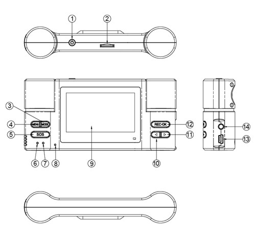 2. SOS emergency button – press SOS button in case of emergency, the machine will automatically save 2 files of the emergency as non-deletable files.