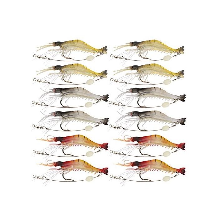 Goture(《고추루》)새우 웜 낚시 루어 밤낚시 소프트 쉬리《푸와무》 새우 루어 야간 발광 모형이 3.5인치 6g 3-12 개세트