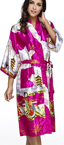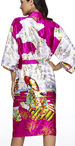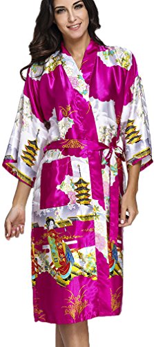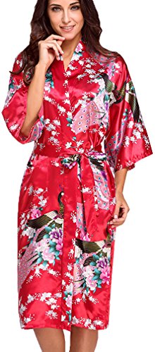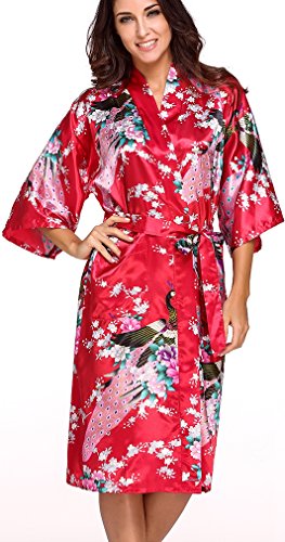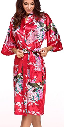 FLYCHEN Women's satin kimono robe sleepwear for ladies plus size (M, Red-6)
