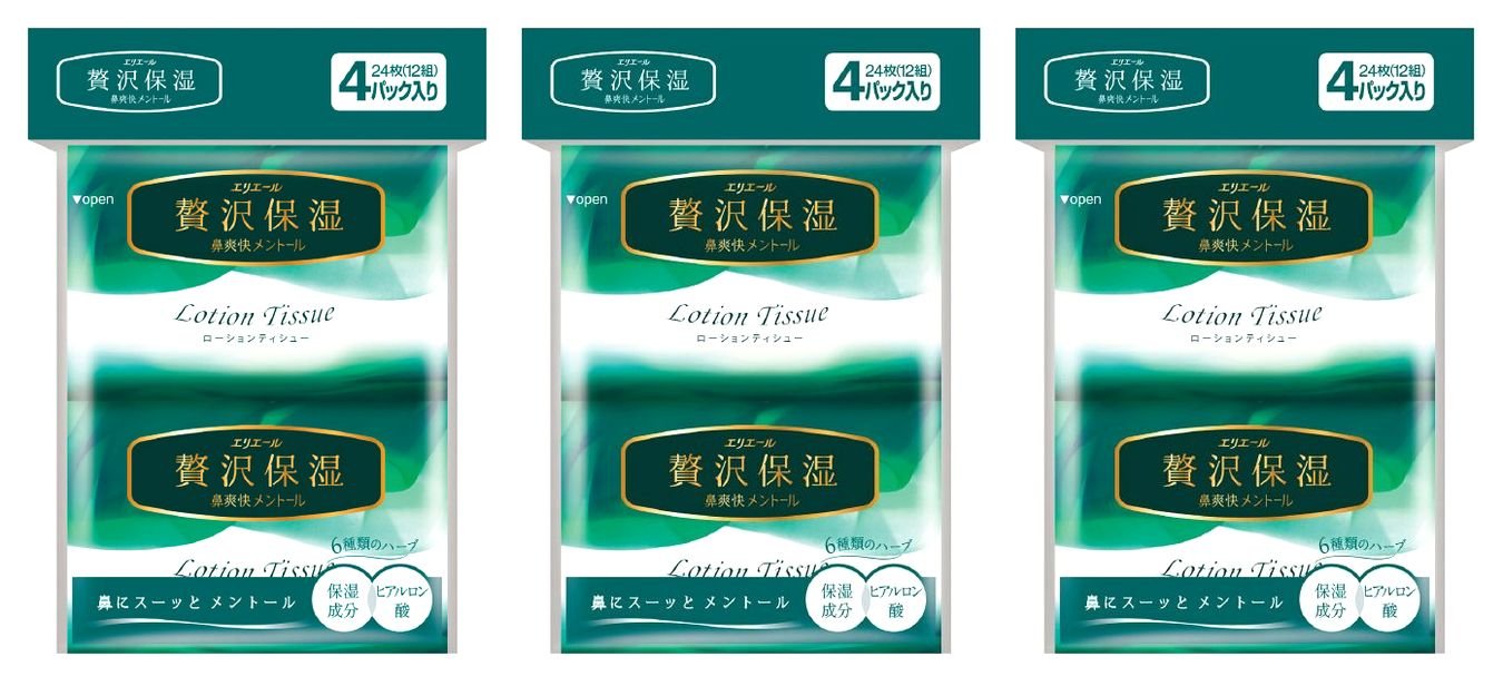 【Conclusion】 Elieres Luxury Moisturizing Nose Refreshing Menthol Pocket Tissue 3 Pack Set (1 Pack 4 Bags × 3 Packs · Total 12 Bags)】