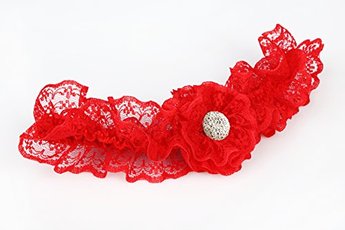 Rhinestone Rose Lace Garter - Sexy Bridal Red/Black Garter for Wedding, Prom, Homecoming etc. Party …