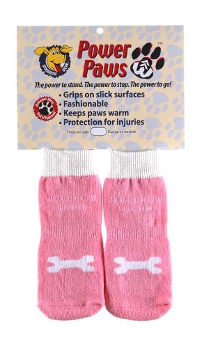 -. Title : Power Paws, traction socks for dogs, M Pink w/ white Bone
