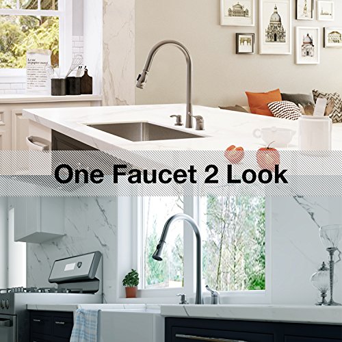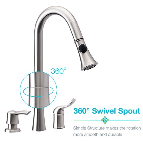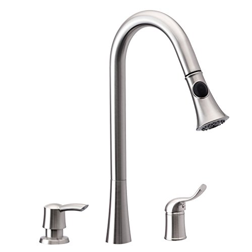 Single Handle Pull Down Kitchen Faucet with Soap Dispenser Brushed Nickel, Peppermint