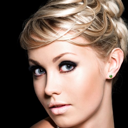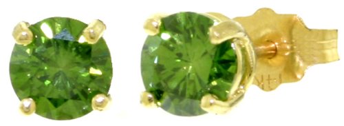 -. Title : 14K Gold Stud Earrings with Genuine 1.0tcw Green Diamonds