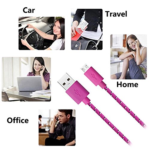Micro USB Charger, iForever 3 Pack 3ft High Speed Nylon Braided USB 2.0 A Male to Micro B Cables Sync Charging Cord for Samsung, Android, LG, HTC, Nexus, Nokia, Sony, Motorola (Black White Hot pink)
