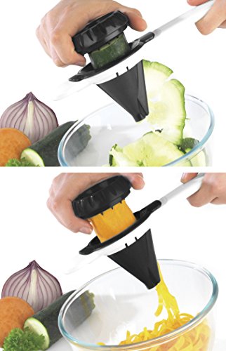 Brilliant - Hand Held Vegetable Spiralizer and Vegetable Ribbon Cutter, 2 Blades Included, Black