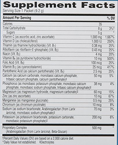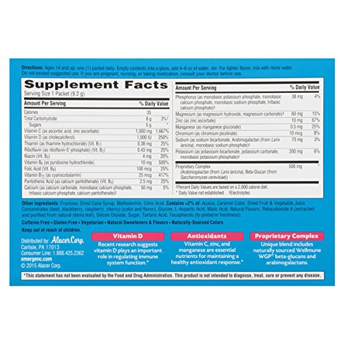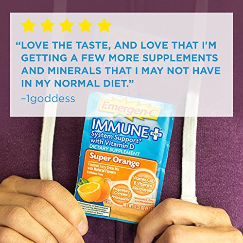 This season, stock up on Emergen-C Immune+. Emergen-C Immune+ features our enhanced immune support formula that’s packed with key nutrients your system needs to promote wellness.* One serving provides 1,000 IU (25 mcg) Vitamin D and 1,000 mg Vitamin C – more than 10 oranges (1). In addition, this Emergen-C dietary supplement contains a proprietary complex with beta-glucans and arabinogalactans, plus Zinc, B Vitamins and electrolytes. Emergen-C powder drink mixes are made with natural, real fruit flavors, plus they have no artificial sweeteners and are caffeine-free. Just add to 4 to 6 ounces of water for a fizzy, fruity boost of goodness. With more than 20 varieties and special formulas, it’s deliciously easy to pair up Emergen-C dietary supplements to support your wellness goals. Visit EmergenC.com to learn more. Transform your day, every day, with Emergen-C. (1) Based on using the USDA.gov nutrient database value for a large, raw orange (2) Antioxidants include Vitamin C, Zinc and Manganese (3) Emergen-Zzzz is a dietary supplement for occasional sleeplessnessFeature