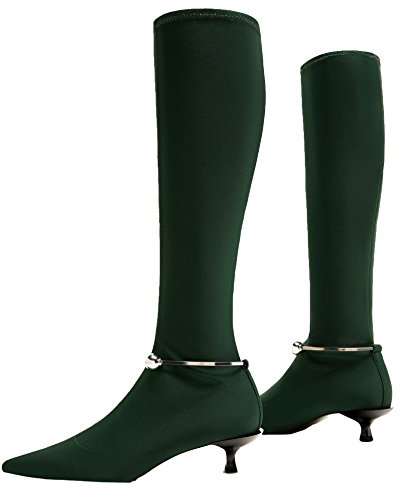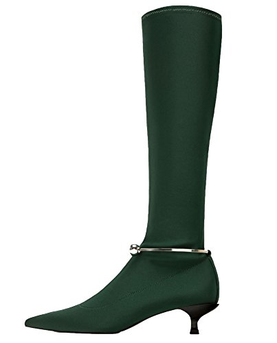 Product Description Over-the knee boots in green fabric. Metal piece detail on the ankle with studs at the ends. Stretch leg. Pointed toes. Heel height of 4.3 cm. / 1.6 inches Official brand size equivalence for Women Shoes. Size 35 | USA 5 ? ?|?UK 2 Size 36 | USA 6 ? ?|?UK 3? Size 37 | USA 6.5 |?UK 4? Size 38 | USA 7.5 |?UK 5? Size 39 | USA 8 ? ?|?UK 6 Size 40 | USA 9 ? ?|?UK 7? Size 41 | USA 10 ?|?UK 8? Size 42 | USA 11 ?|?UK 9? Size 43 | USA 12 ?|?UK 10 0