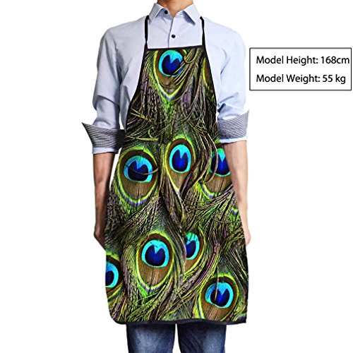VIPbuy Novelty Waterproof Kitchen BBQ Craft Bib Apron Dress Costume for Women Men , 3D Peacock Feather Design