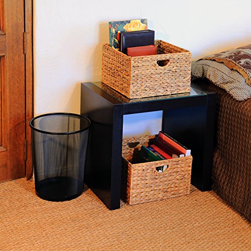 Studio : Seville Classics Publisher : Seville Classics Binding : Kitchen Product Description This beautiful hand-woven Seville Classics Water Hyacinth Storage Cube Baskets (2-pack) will serve as the focal centerpiece of any bedroom, closet, restroom, laundry room, kitchen or living room. Each water hyacinth strand is elaborately woven around a durable steel frame forming an attractive square shape. This closed and tight hand-weaving style strengthens the baskets overall rigidity and design. Handles allow for easy and convenient carrying. Each basket has a beautiful natural finish and measures 13.25" by 13.25" by 8" high. 0