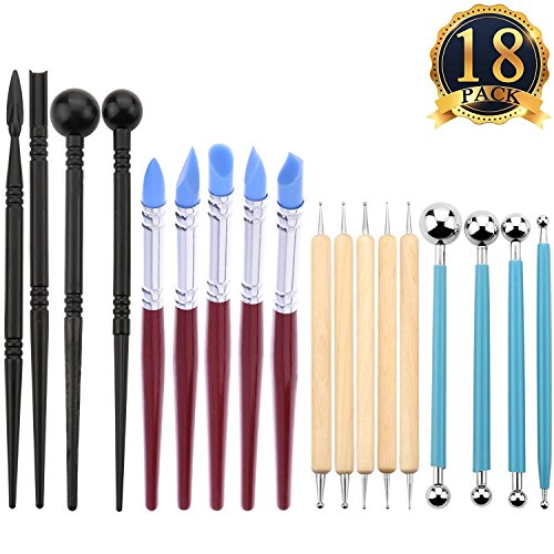 Polymer Clay Tools, Genround 18pcs Pottery Clay Sculpting Tools for Pottery Sculpture, 5pcs Double Sided Dotting Tools + 5pcs Rubber Tip Pens + 4pcs Ball Stylus + 4pcs Modeling Tools Pottery Tools