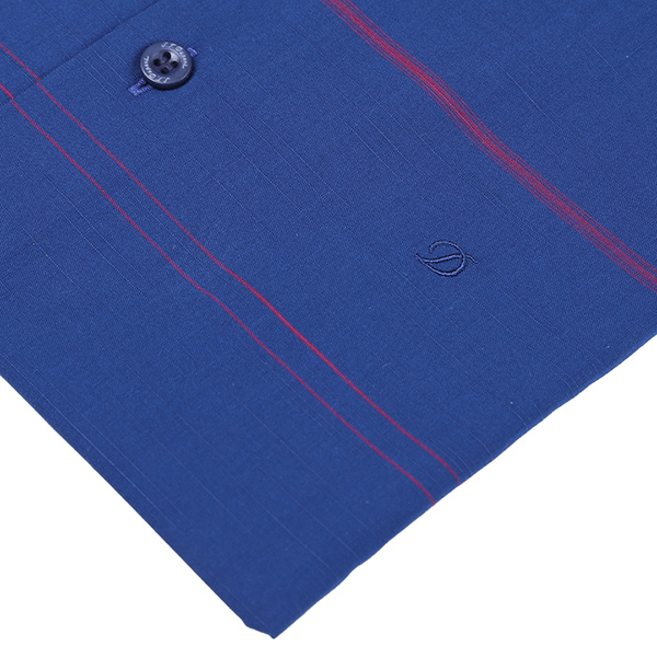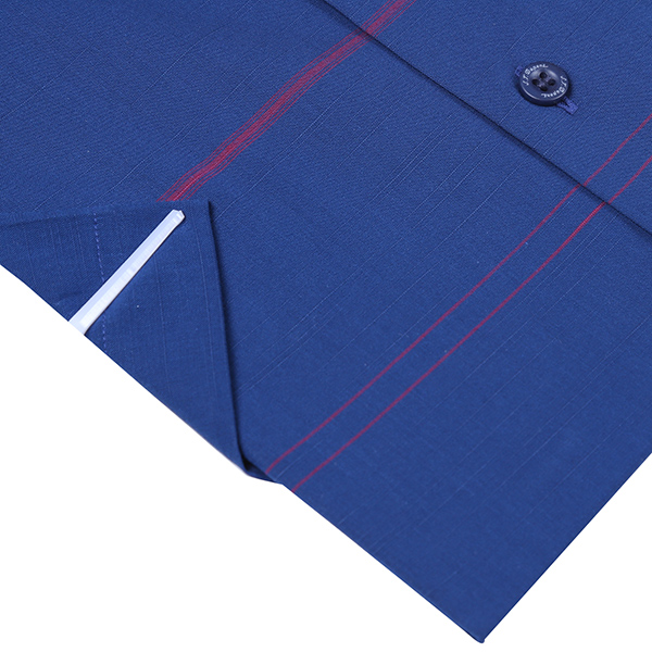 네이비 슬럽 그라운드에 몸판 중앙에 원포인트 레드 스트라이프가 디자인된 제품입니다. 주머니 없는 비지니스 스타일로 캐쥬얼 남방으의 히든스넵의 제품입니다.