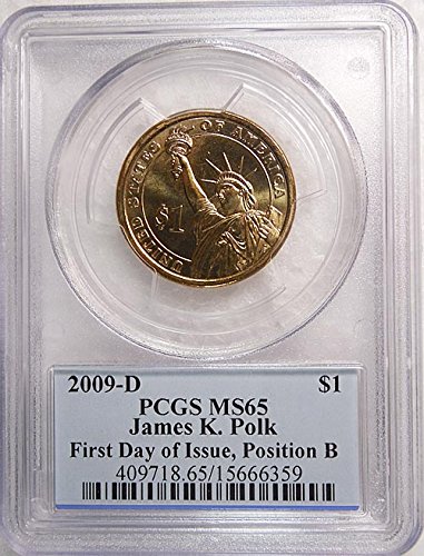 - 2009 D Pos. B James K. Polk Presidential Dollar PCGS MS 65 FDI Presidential Label Holder