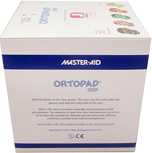 Ortopad Orthoptic Eye Patches have been helping children successfully treat amblyopia (lazy eye) for over 10 years. Ortopad patterned patches differ from other patches in that the 5 designs in every box make patching fun. In addition, Ortopad patches maximize comfort through a latex-free adhesive. Simply apply the Ortopad patch and the pressure sensitive adhesive will utilize the body's own heat to create comfortable fit. The patches are easily removed from the face without the typical discomfort. Ortopad Orthoptic Eye Patches for Boys are available in three sizes - Junior (for children up to 2), Medium (for children 2 - 4) and Regular (for children over 4). Fun pattern designs for both boys and girls are available in all sizes.Feature