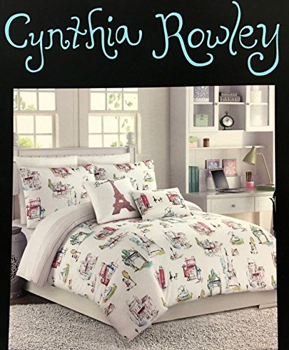 Cynthia Rowley Paris in Color 3-Piece Full/Queen REVERSIBLE Duvet Cover Set | Features Paris Street Scenes Including Eiffel Tower