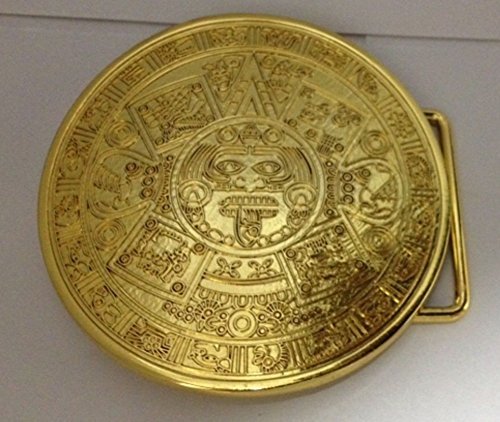 -. Title : Aztec Maya Calender Gold Finished Belt Buckle