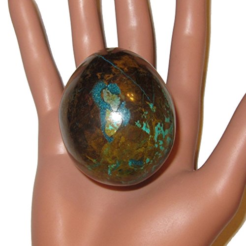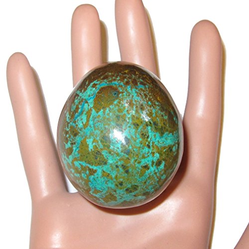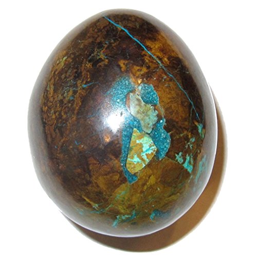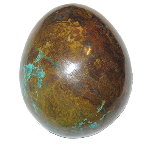 Your egg is made from attractive chrysocolla of Peru. This adorable hand carved piece boasts a rich green, blue, and turquoise medley. Your piece is polished to a shine, yet retains natural lines and ridges. Receive the exact item pictured when you order from Satin Crystals.