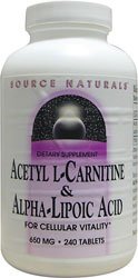 Source Naturals - Acetyl L-Carnitine & Alpha-Lipoic Acid 650 mg 240 tab 240 tab
