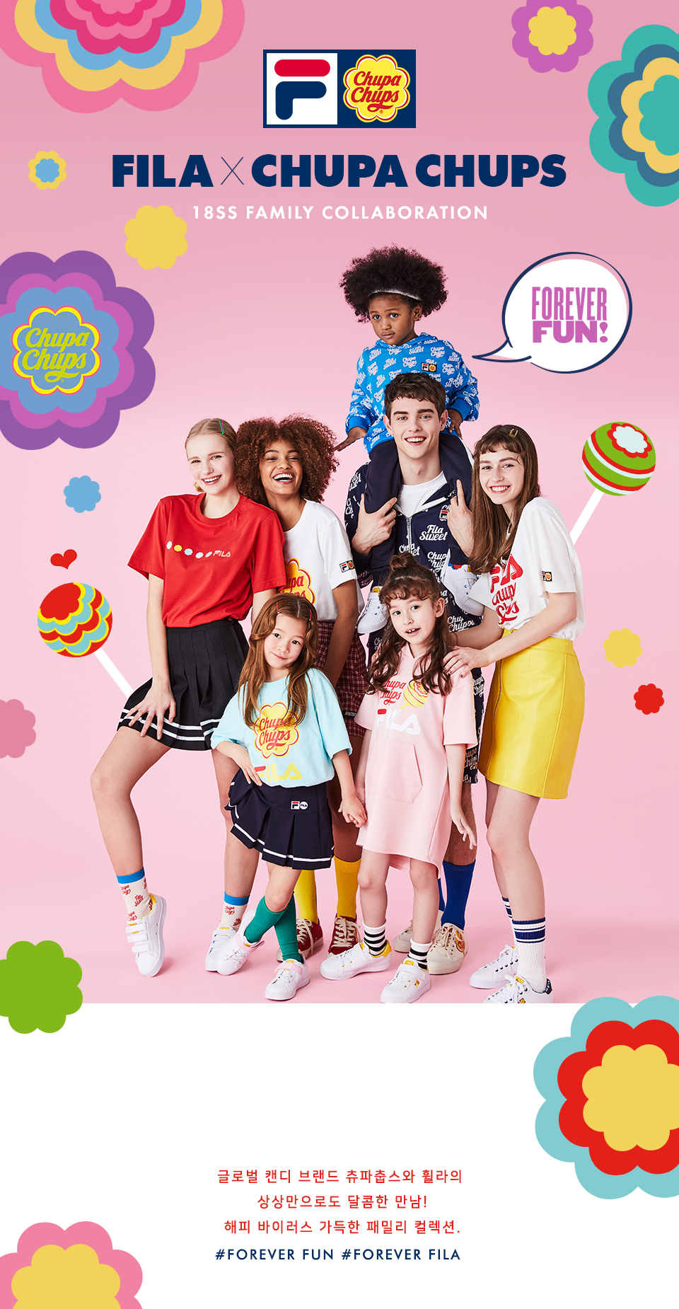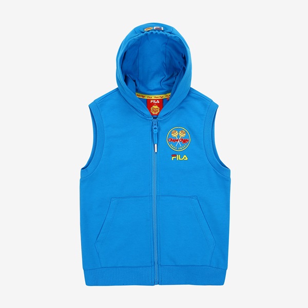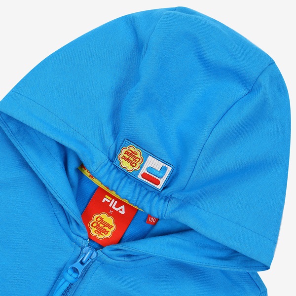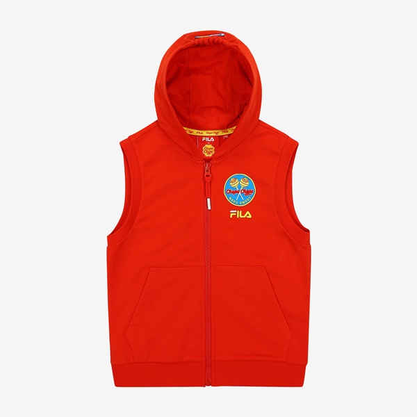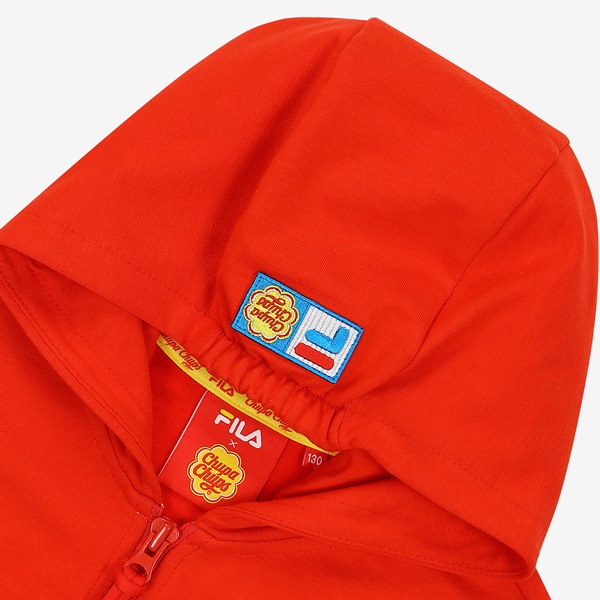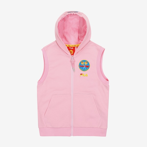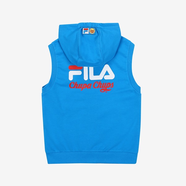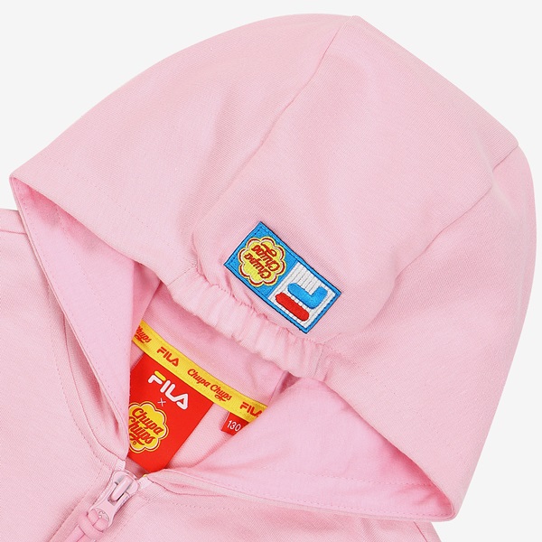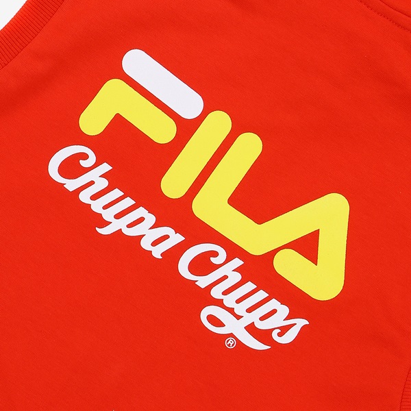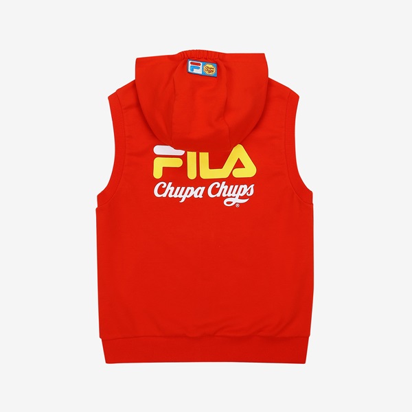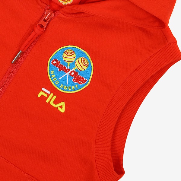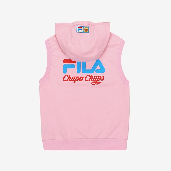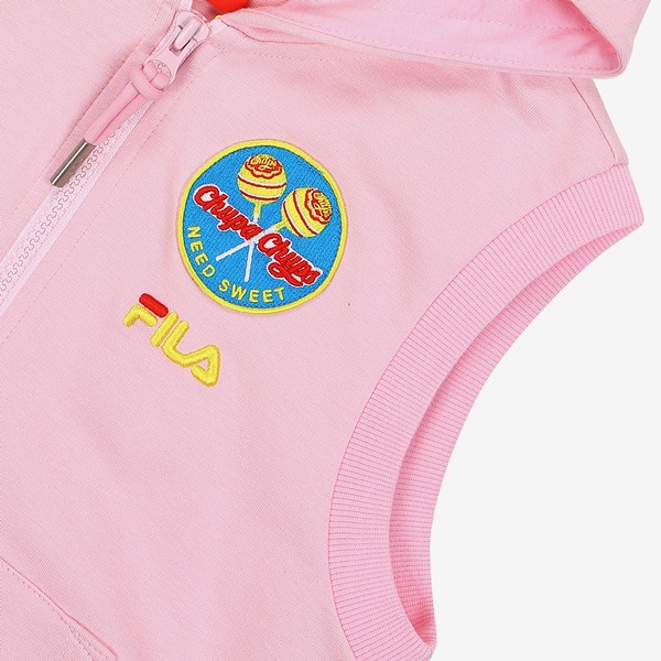 츄파츕스 콜라보레이션 아동 단독 상품 출시 간절기 레이어드 착장으로 용이한 민소매 풀집 스타일FILA 로고와 CHUPA CHUPS 캔디 모티브 포인트 등/하교 착장으로 제안하며, 3월~7월까지 다양한 착장 활용 토들러(110)부터 초등학교 저학년(145) 남/여아용