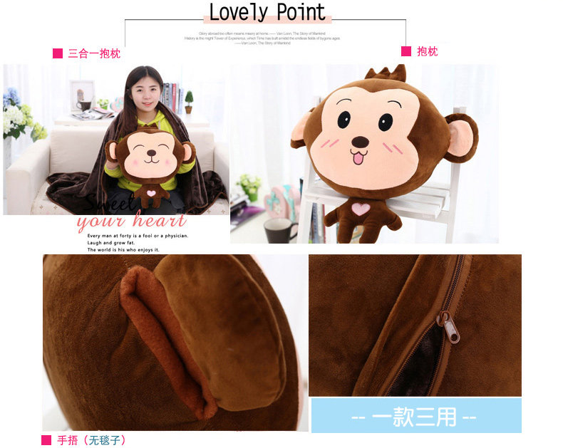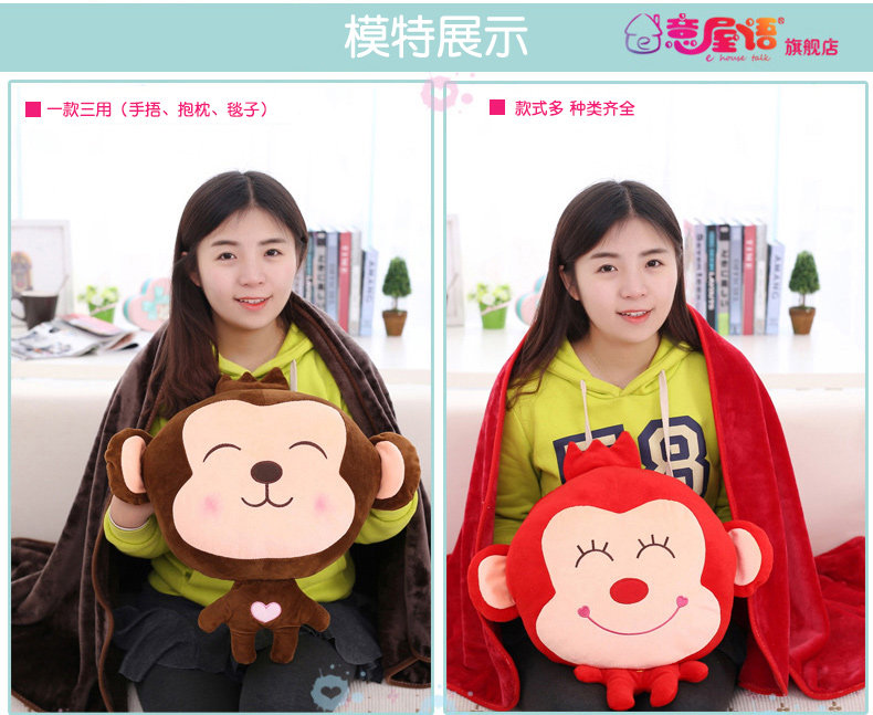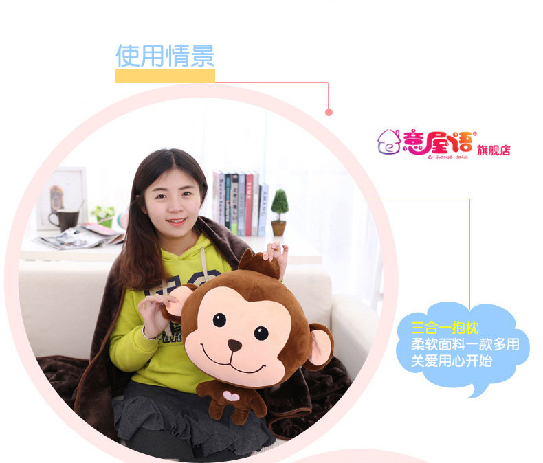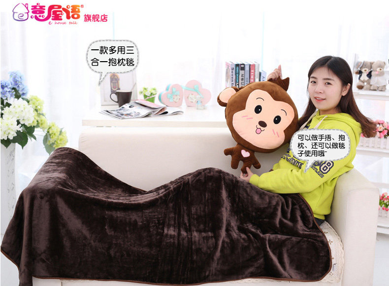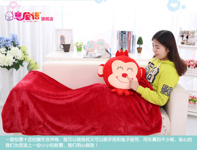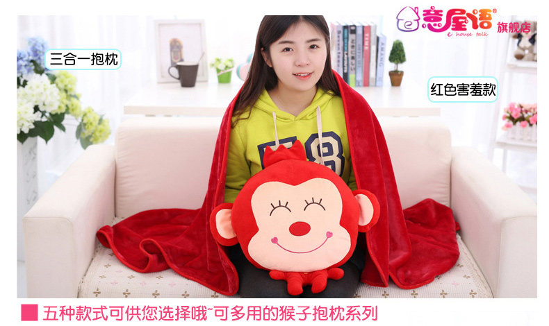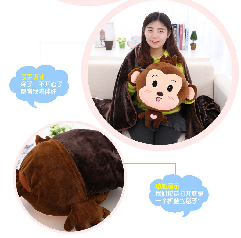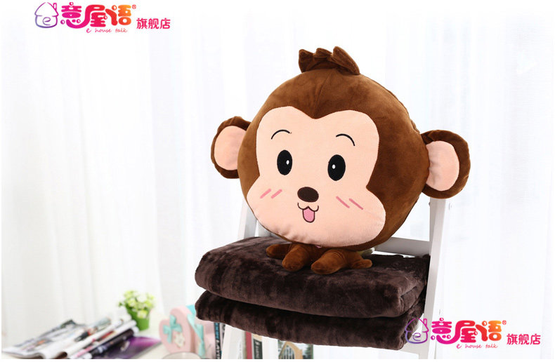 猴子款午睡枕头被子汽车抱枕被子两用靠垫被珊瑚绒空调被靠枕毯子