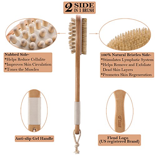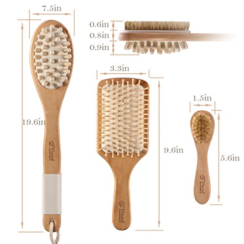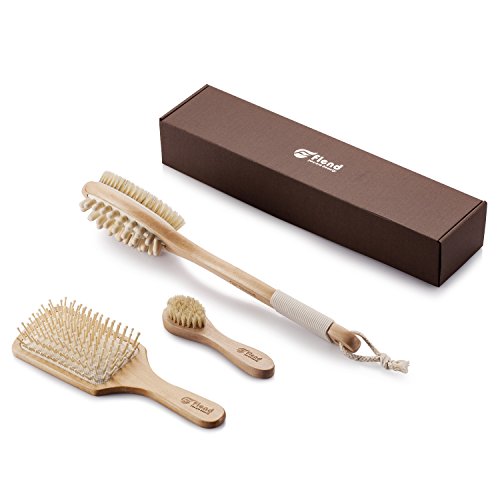 -. Title : 100% Natural Boar Bristles Flend Bath and Shower Brush with Dual Head (Skin Brushing + Cellulite Massage)+Facial Complexion Brush+Detangling Hair Brush, Complete Wooden Brush Set in Gift Box