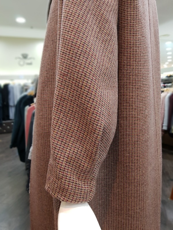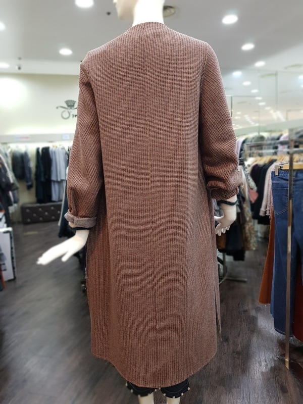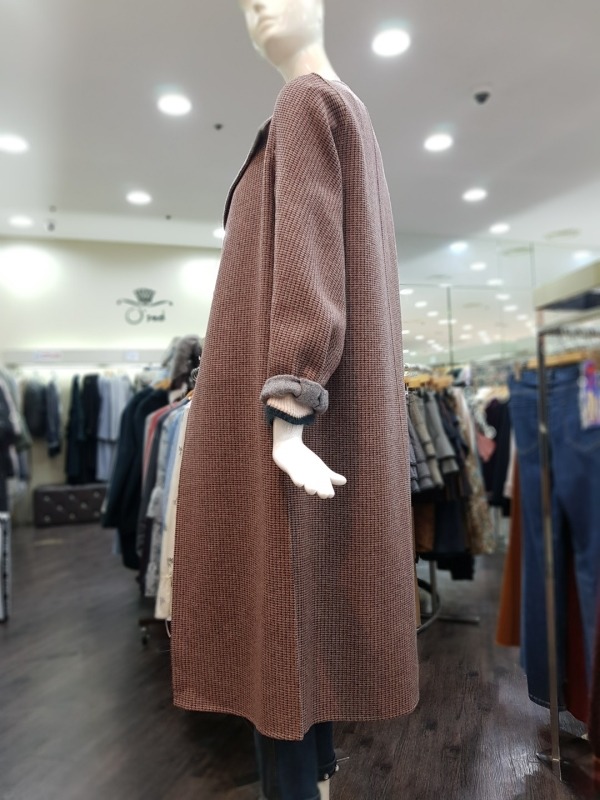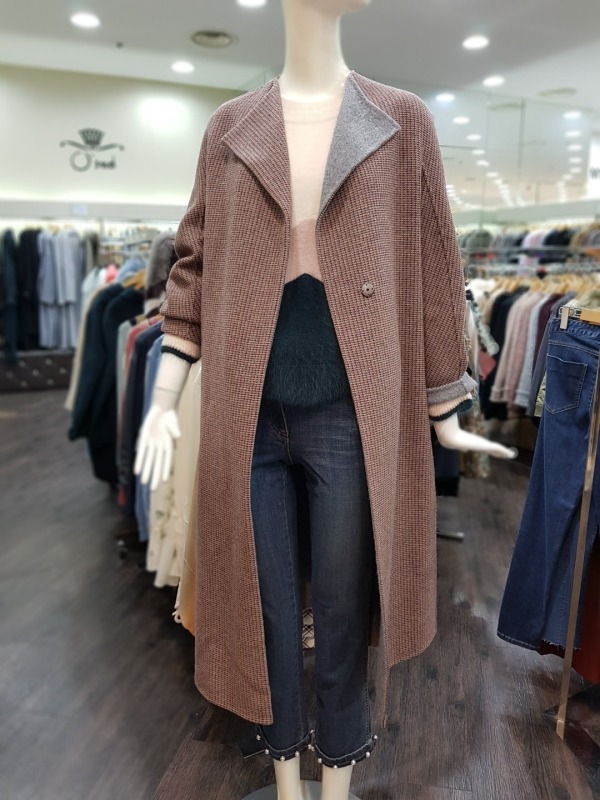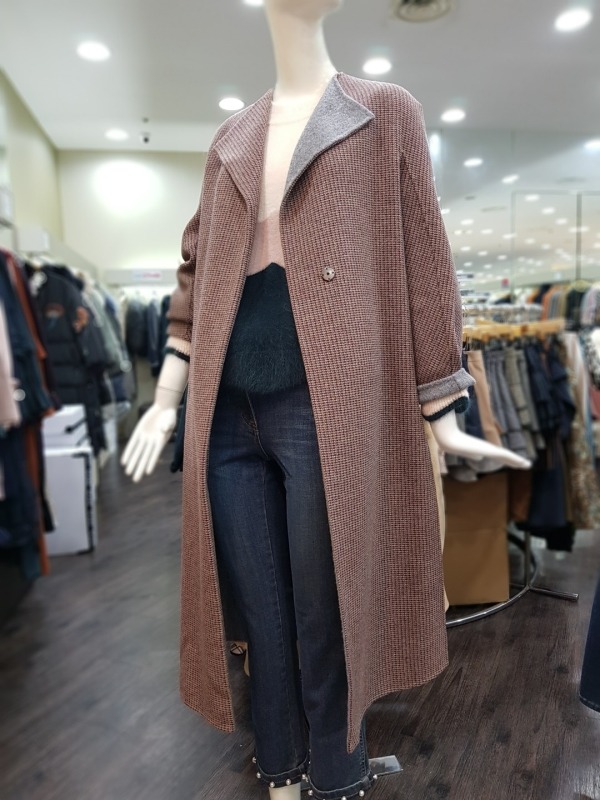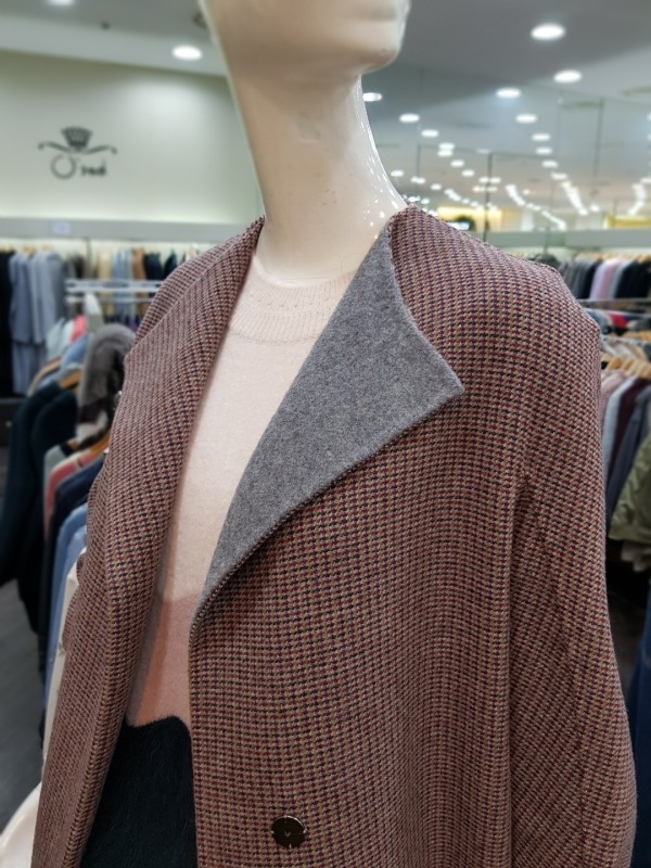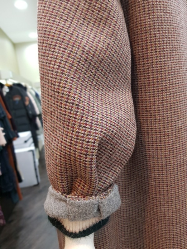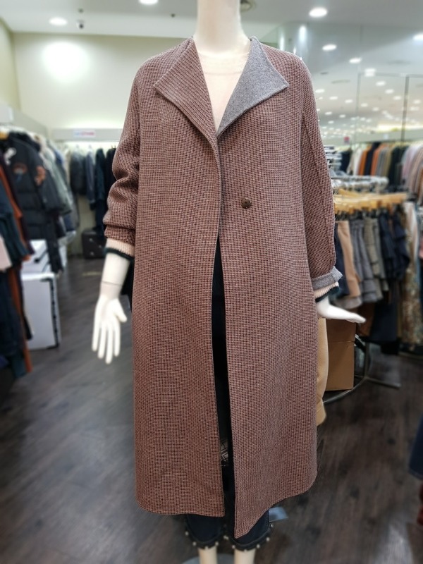 잔잔한 버건디와 그레이 컬러가 믹스 되었있으며 언발런스한 배색의 카라가 돋보이는 코트입니다. 밑단 옆선의 트임과 소매의 디테일이 멋스러운 오버핏 롱 코트입니다. - 총장 113센치 정도 됩니다.