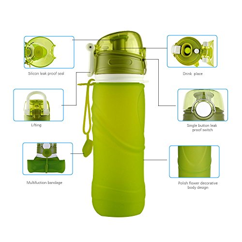 -. Feature : ★ SAFE MATERIALS - Made of medical grade silicone & food grade PP, 100% BPA-free, non-toxic, odorless, FDA/LFGB/SGS approved. / ★ LIGHT WEIGHT WITH LARGE CAPACITY - 26 ounce volume but only 0.35lb in weight makes it portable on the go. / ★ INNOVATIVE DESIGN - Foldable and portable, easy to roll up and fit inside a bag. The wide-mouth design makes it easy to add fluids, ice cubes, and to clean. The pop-up lid makes it convenient to drink. Innovative air return valve technology. Stainless steel buckle prevents the bottle from accidentally opening. Designed for bicycling, running, camping, hiking, mountaineering, travel, exercise and fitness. / ★ HEAT RESISTANT - The silicone bottle body endures a wide range of temperatures from -40~100℃(-40~212℉), can be used in the extreme environment. / ★ GUARANTEED - We know you have options here, and we want to make the best choice the easiest one, and that's why we offer a 100% Satisfaction Gaurantee! If for any reason our product doesn't meet your standards, just send it back our way for a replacement or a full refund! The choice will be yours!