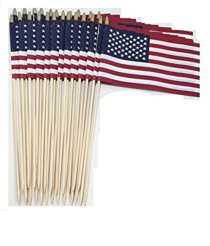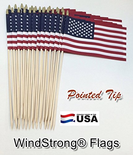 Lot of -24- 8x12 Inch US American Hand Held Stick Gravemarker Flags WindStrong® with Spear Tip 24 Inch Pointed Bottom Dowel Made in the USA
