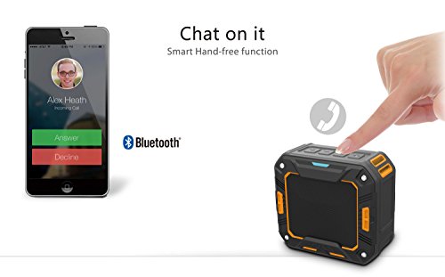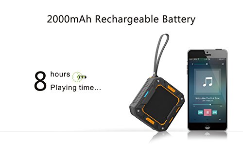 -. Feature : HIGH QUALITY CRYSTAL CLEAR SOUND - Distinct mids and highs from our precision acoustic drivers delivers excellent stereo sound and enhanced bass from our proP.R.Ietary passive bass radiator design. Distortion-free at maximum volume; room filling sound, perfect for Home, Bike Riders, Outdoor Enthusiasts, Bathroom, Car, Parties; streaming music or internet radio services such as and Spotify / ULTRA PORTABLE - The speaker size is 3.9*3.54*1.97 inches and weight is only 10.05 ounces, you can carry it with you easily at anytime and anywhere. It offers great quality sound with the latest Bluetooth 4.1 technology, portable for Android and iPhone tablets, Smartphone, iPods, all Bluetooth-enable device or any device with 3.5mm audio jack / FREE YOUR HANDS - No matter enjoy bathroom or outdoors time, the double built-in MIC and hands-free function can let you enjoy wonderful music without the hassle of long cable and set free your hand from answering a call, you can conveniently pick up a call by this mini speaker in anywhere during it is connected to your Smartphone. / WATER RESISTANT IP65 - waterproof, shockproof, dustproof, typical shower outdoor speaker, red construction; make it suitable for the shower, beach, poolside, boat. / BUILT IN LONG LASTING USAGER - 2000mAh capacity, up to 8 hours play time. Great mini USB charging port, which can be charged by power bank anywhere in emergency.