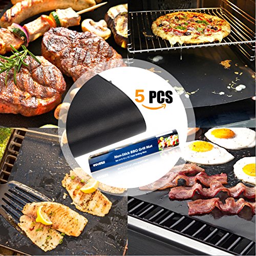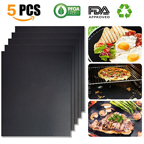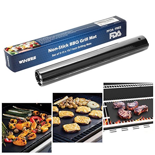 WINSEE Grill Mat Set of 5 Non-Stick BBQ Grill Baking Mats Cooking Mats FDA-Approved PFOA Free Reusable and Easy to Clean 15.75 X 13 Inch Black