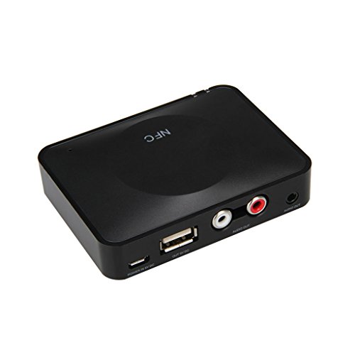 -. Feature : NFC function makes connection easier and more convenient,no need to search for pairing. / Can be paired to any Bluetooth enabled devices, such as mobile phone, laptops, speaker. / Standard RCA and 3.5 mm jack (3.5mm to 2-RCA cable included), easily connected with the speaker input port. / 5V USB output port can charge most USB-charged devices, include iPhone,iPad,iPod. / Compact and human-friendly design, convenient to carry, suitable for home use and office, etc.