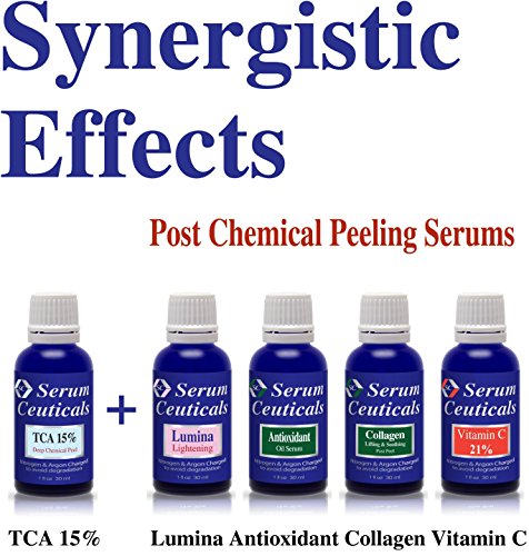 Caution Side Effects: A temporary painful, tingling or burning sensation has been often noted upon initial contact as well as heightened skin sensitivity, redness and peeling. These are very normal and will be disappeared soon but those with extra-sensitive or allergic skin should do a patch test on a small and less visible area first to determine if their skin may tolerate this serum. Never use manual exfoliators nor scrubbing brushes within 24 hours of using this serum. Never use this serum on the open or inflamed skin. Be careful to use any high or even low concentrates of TCA peel products. You have to read all directions, ingredients, warning and cautions when you buy any chemical peel products.