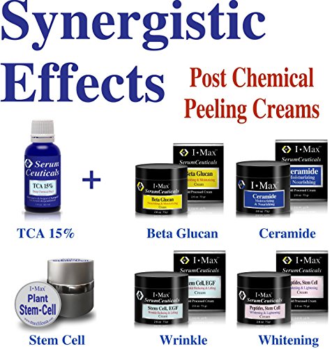 TCA for Deep Chemical Peel is a non-toxic chemical (Trichloroacetic Acid), which has been used to perform skin peels over 25 years. TCA makes the top layers of skin cells dry up and be peeled off over a period of one to two weeks. The skin turnover rate is significantly promoted by TCA. After the old skin is peeled off, a new layer of undamaged skin is exposed. It has smoother texture and lighter and more even color. I Max 15% Trichloroacetic Acid Serum-Deep Chemical Peel is a great facial serum for tightening, lifting, wrinkle reducing, antiaging and fading dark spots. Unlike other chemical peel products, this serum is formulated very uniquely with effective actives for nurturing, soothing, healing and hydrating like Vitamin Bs, Beta glucan, Chitosan, Botanical extracts and etc.