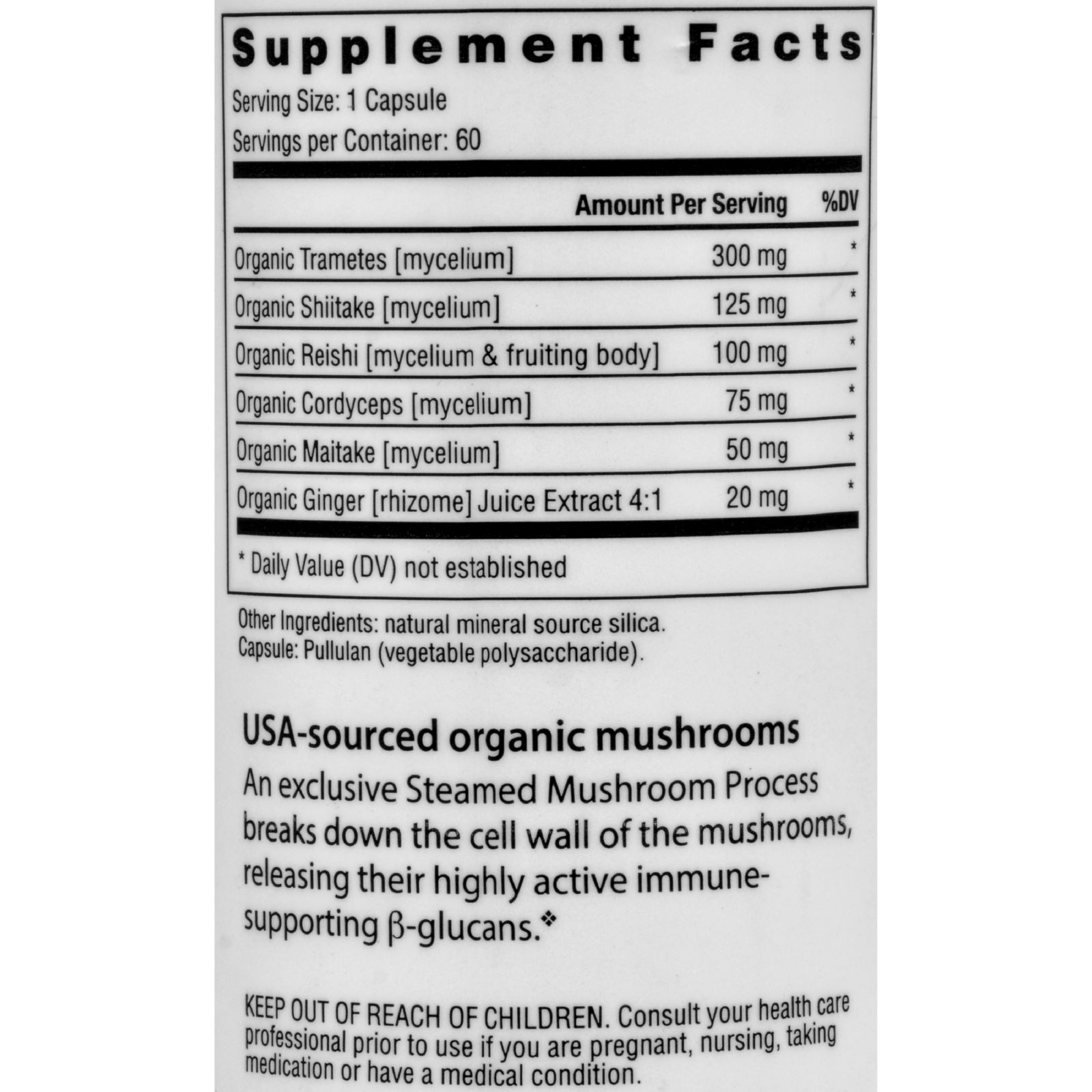 Certified Immuno-Build Mushrooms contains a cellular defense complex made with the five most studied immune supporting medicinal organic mushrooms: trametes, shiitake, maitake, reishi, and cordyceps. We use a steamed mushroom extraction process that activates the cell wall of the mushroom to release immune supporting 1,3 beta glucans in an-easy-to-swallow vegetarian capsule. USA-sourced and certified organic by Quality Assurance International (QAI). When taken as directed, Certified Immuno-Build Mushrooms can help strengthen your immune system for better overall health and well-being. |