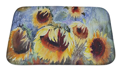 Gear New Watercolor Painting of Beautiful Sunflowers Bath Rug Mat No Slip Microfiber Memory Foam