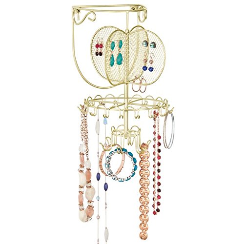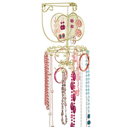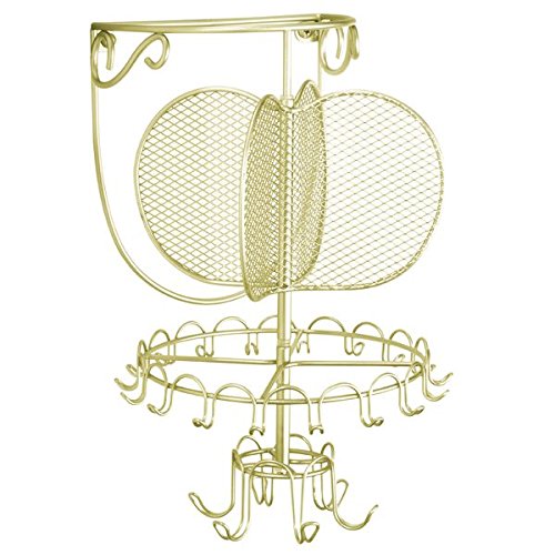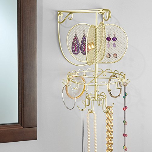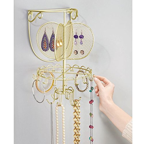 mDesign Spinning Fashion Jewelry Organizer for Rings, Earrings, Bracelets, Necklaces - Wall Mount, Gold/Brass