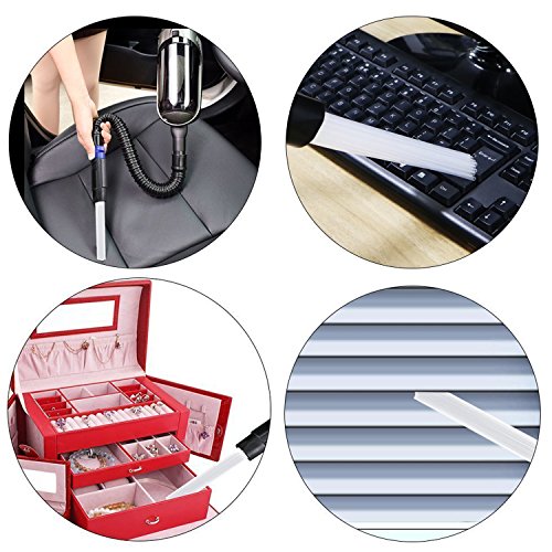 INNOVATIVE DESIGN SAVE YOUR TIME -- Innovative dust remove tool, the long and flexible tubes have access to any deep corners, no need to move objects anymore, no longer need to do more jobs. Keyboards, Shutters, Air Vents, Drawers, Jewelry, Cars, Boxes are all easy to reach.