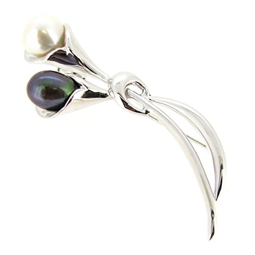 -. Title : Sterling Silver Freshwater Cultured White and Peacok Pearl Lily Flower Brooch with Safety Pin