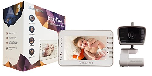 Style: 4.3 inches monitor with two cameras system Moonybaby 55933-2T use 100% DIGITAL 2.4Ghz technology to secure PRIVACY between the connection of the camera and the monitor. Camera has TEMPERATURE SENSOR to tell you whether the room is too hot or too cold. 4.3 inches FULL COLOR LCD screen with sound activated LEDs allows to see baby clearly in day and night. You can ZOOM IN the camera to see closer of baby. With TALK BACK button, you can talk to your partner or baby when they need you. Camera has built-in 5 LULLABIES and you can play lullaby from monitor to soothe baby.Feature