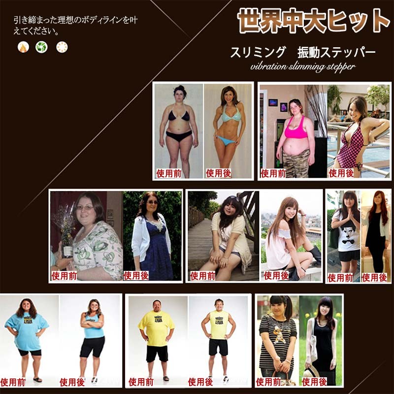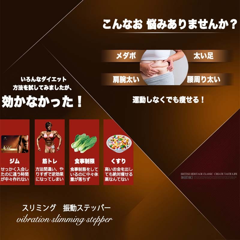 上に乗ってるだけで、ステッパーの高速振動によって筋肉を揺れらせ、全身隅々まで汗流し、燃 焼系運動しましょう!無理せず続けられる、1日たった10分で身体の中からすっきりきれいに!活力をチャージ!