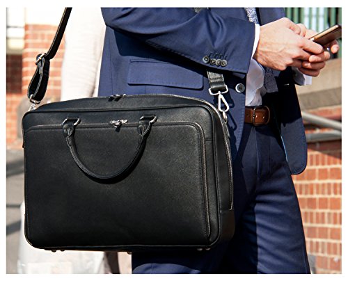 -. Feature : HAND MADE from highest quality vegan faux leather - The Angus Bag from My Best Friend is a Bag is both lightweight and durable - the perfect Business Bag for men who are looking for DESIGNER STYLE as well as practicality. / BE AMAZED how much this bag holds - versatile multi-compartments - 2 PADDED SLEEVES for electronic devices - 3 x inside side pockets for cell phones, glasses, business cards, credit cards PLUS handy clip for keys - Plus additional zippered front section makes this bag AIRPORT FRIENDLY, SECURE AND IDEAL FOR BOTH WORK AND TRAVEL / Approx size: 17.5" W x 12"H x 3"D - padded sleeves 15.5 inches wide - Detachable adjustable shoulder strap - fits most 15 - 15.6 inch laptops, Tablets, iPads, Kindles, Ultrabooks and large Smart Phones - PROTECTS YOUR LAPTOP AND DEVICES from impact and scratching with internal padding and quality interior material lining / JUST BECAUSE YOU MEAN BUSINESS DOESN'T MEAN YOU HAVE TO BE BORING - Don't settle for a badly made messenger bag or a poor quality nylon laptop bag - the design and interior tartan fabric of this Fabulous Angus Men's Work Bag - shows the world that business and fashion do go together / Every Bag from My Best Friend is a Bag is HAND MADE with 100% MANUFACTURERS GUARANTEE AGAINST FAULTY WORKSMANSHIP - ORDER NOW with absolute peace of mind - THE BEST INVESTMENT YOU WILL MAKE IN YOUR BUSINESS WARDROBE