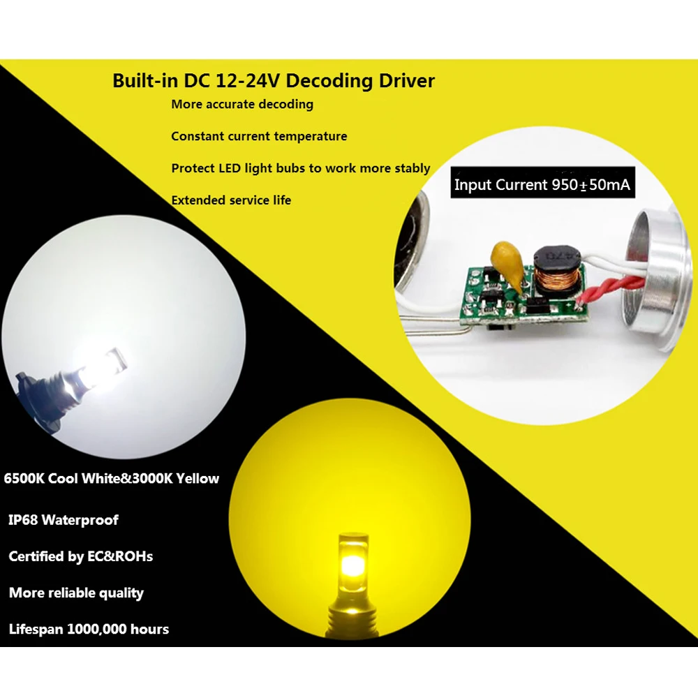 Color Temperature:6500K Cool White&3000K Yellow led fog light