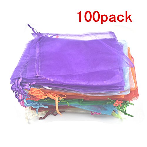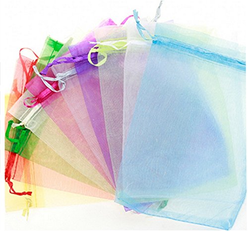 Lsgoodcare 100PCS 5.12"x7.09" Assorted Colors Sheer Drawstring Organza Gift Bags Jewelry Pouches Wedding Party Festival Christmas Favor Candy Bags